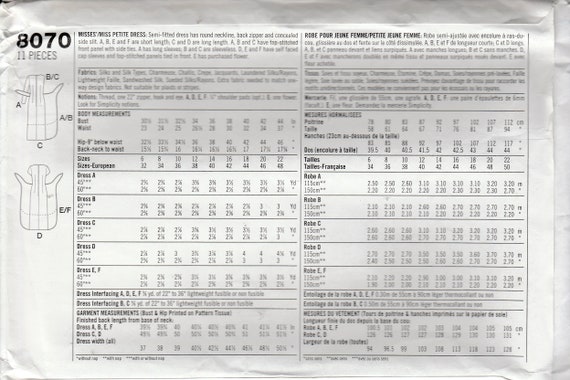 Sewing Pattern Simplicity 8070 Women S Misses Short Long Etsy