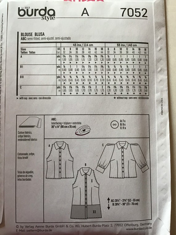 Sewing Pattern Burda 8007 Womens Pullover Top Size Etsy